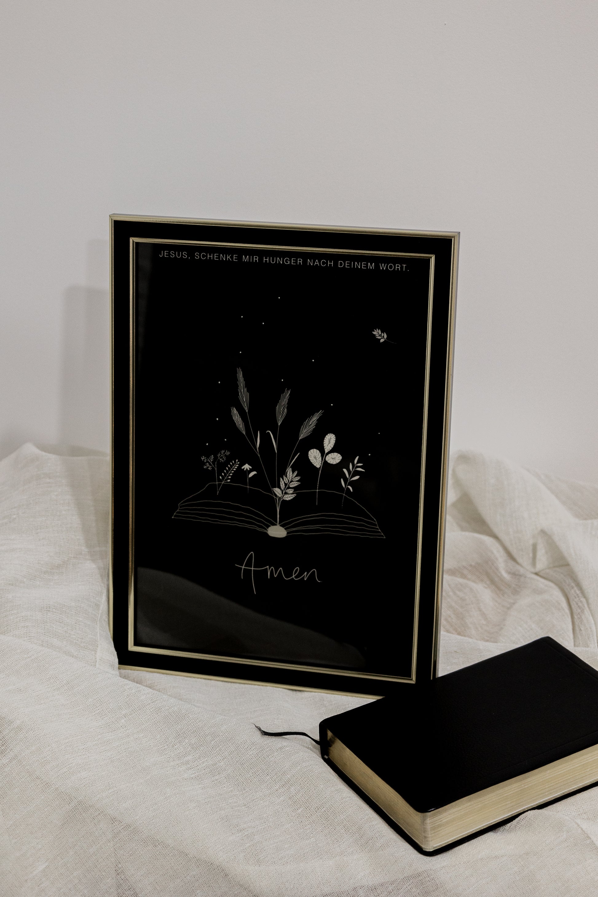 Poster A4; Bibel; Pampasgras; schwarz; gold