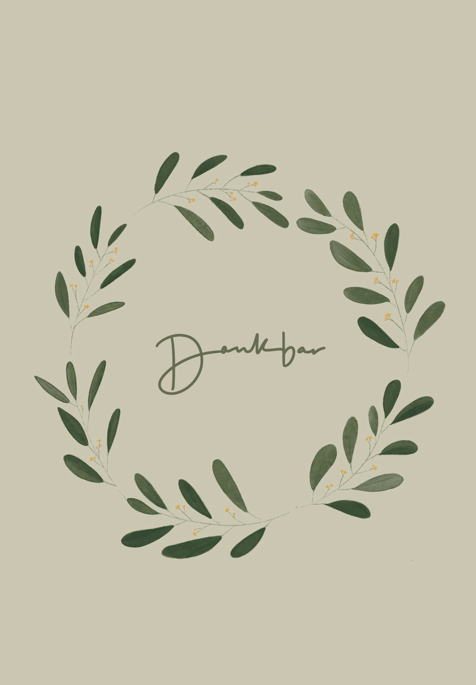 Dankeskarte; "Dankbar"; Kranz mit grünen Blättern