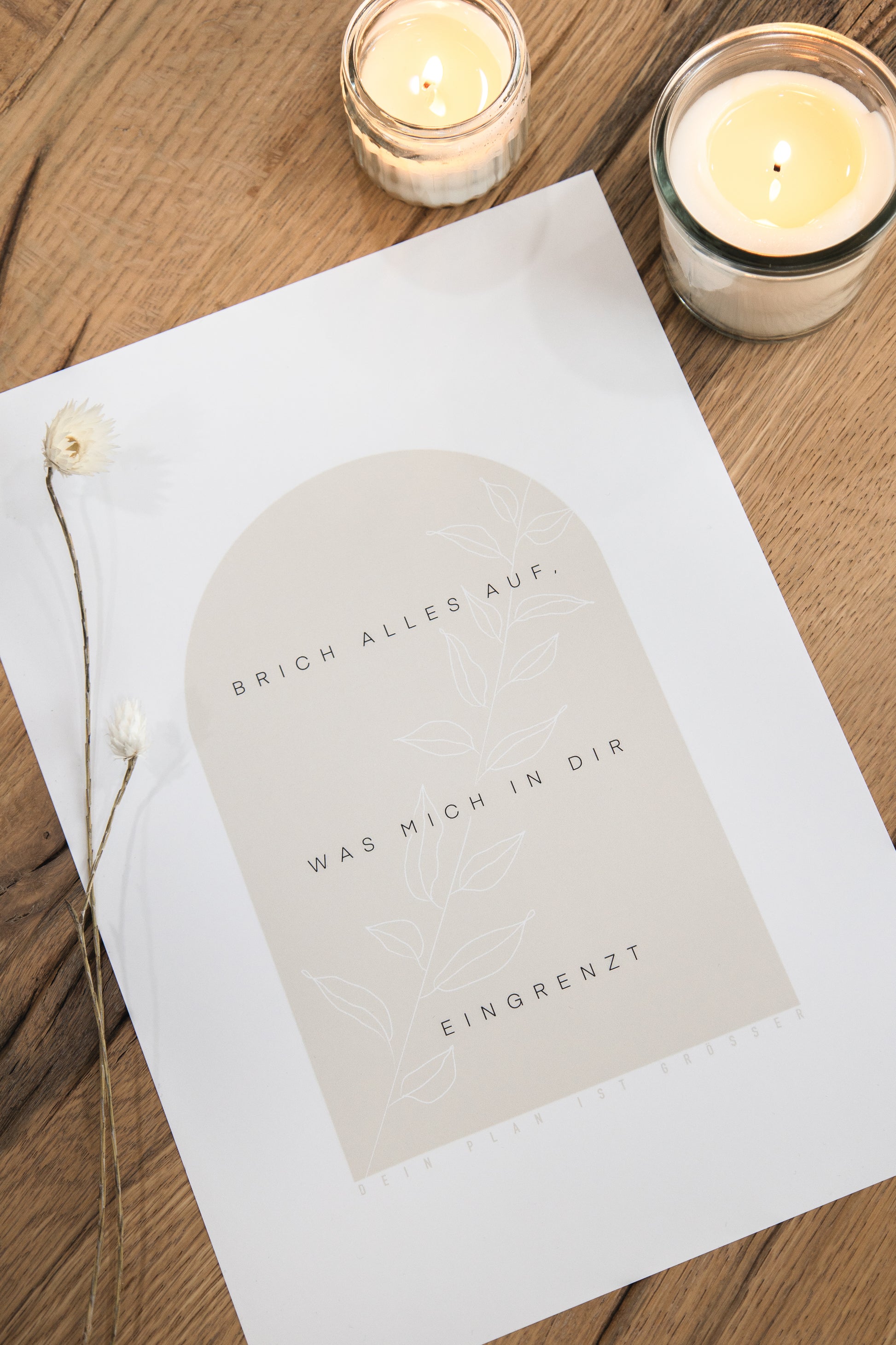 Poster; Brich alles auf, was mich in dir eingrenzt. Dein Plan ist grösser; Boho; Beige
