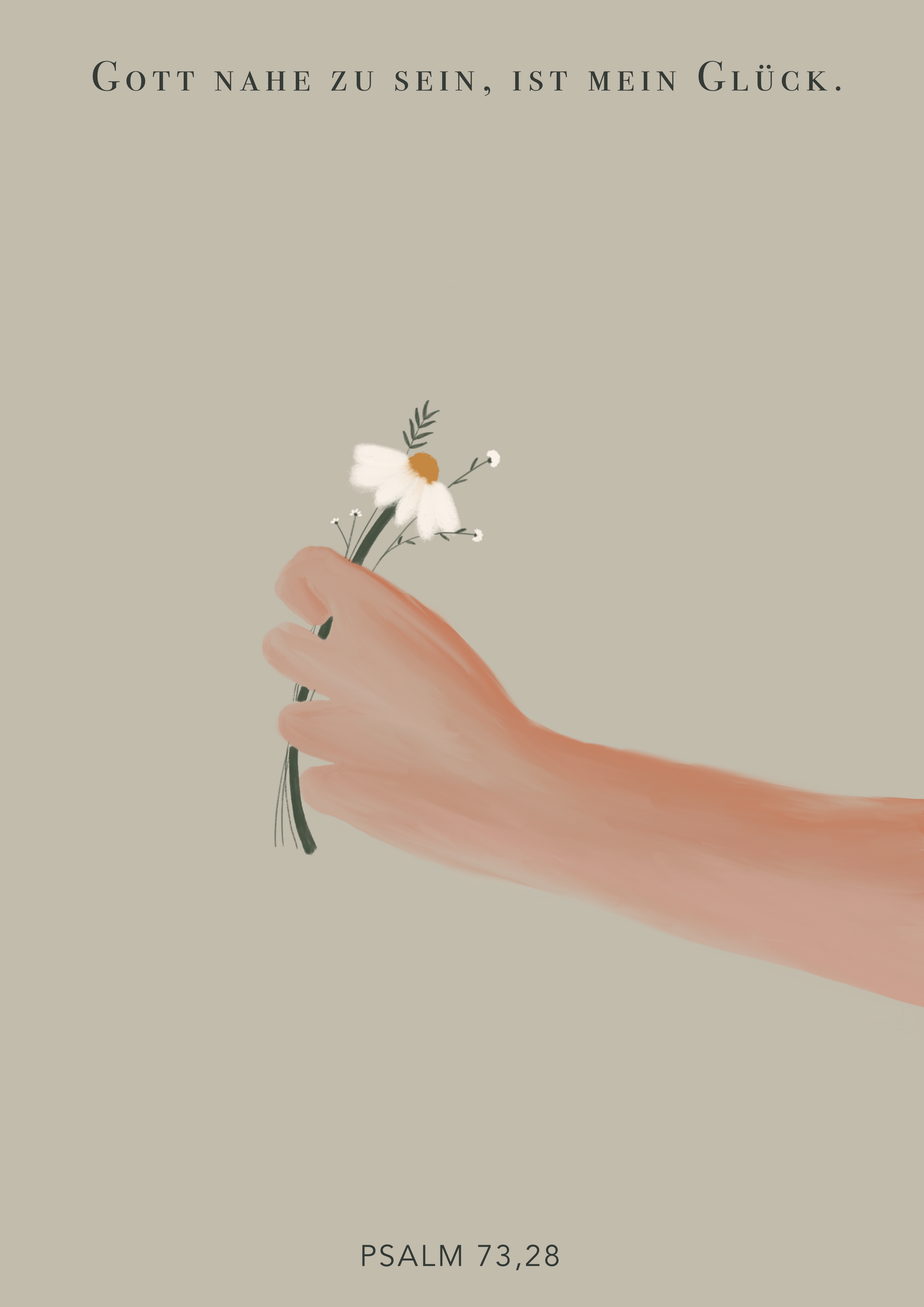Poster A4; Hand mit Blumenstrauß; Psalm 73,28; beige