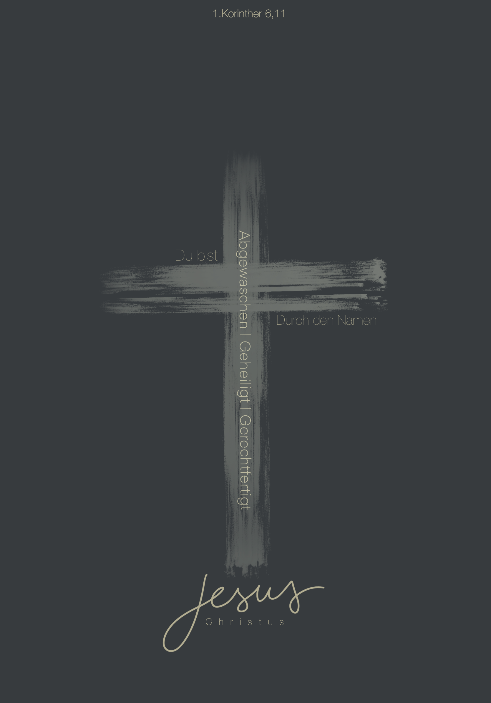 Bibelvers; Du bist abgewaschen/geheiligt/gerechtfertigt durch den Namen Jesus Christus; Dunkelblau