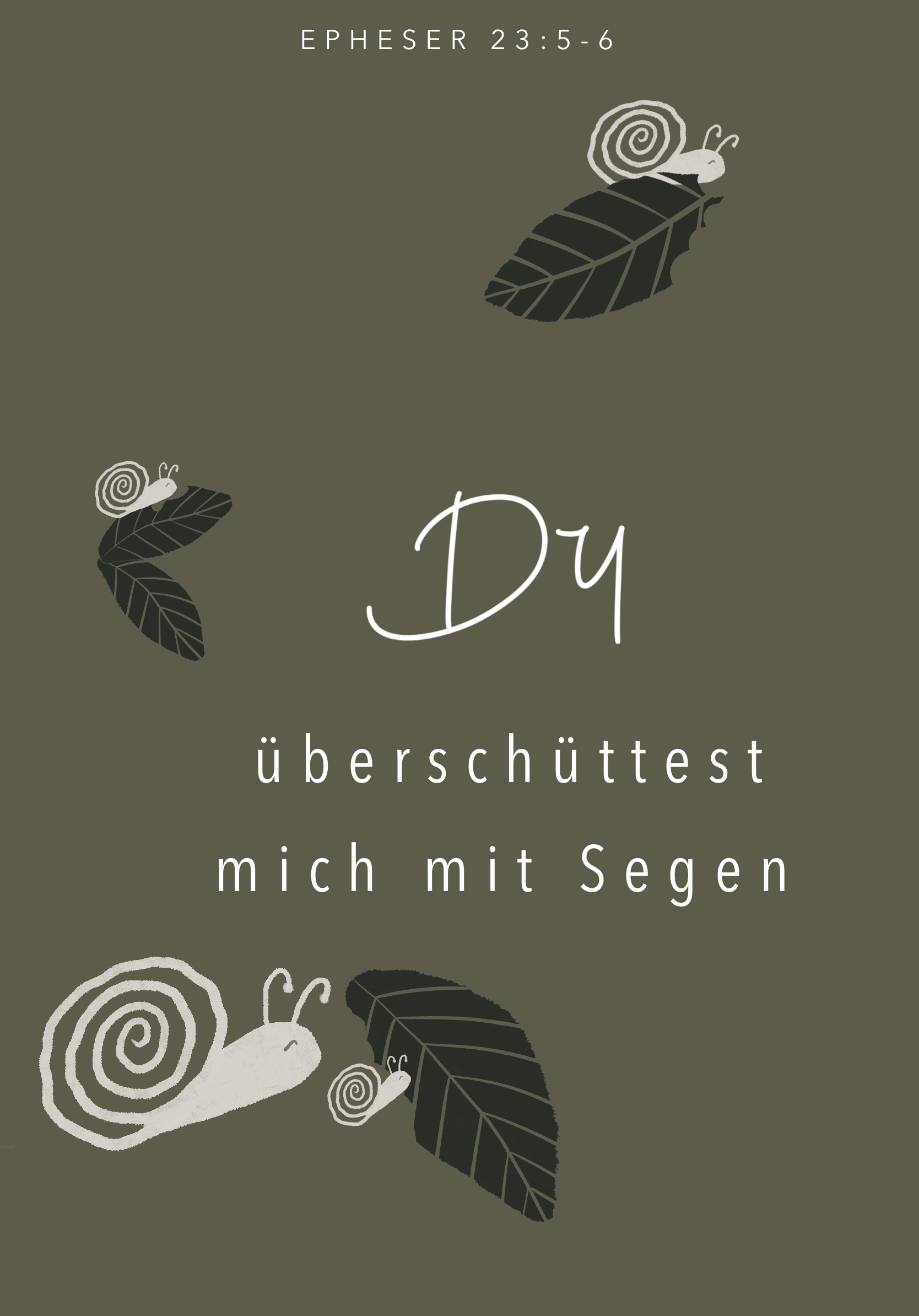 Schnecke; Blätter; Bibelvers; Epheser 23,5-6; Du überschüttest mich mit Segen; Beige