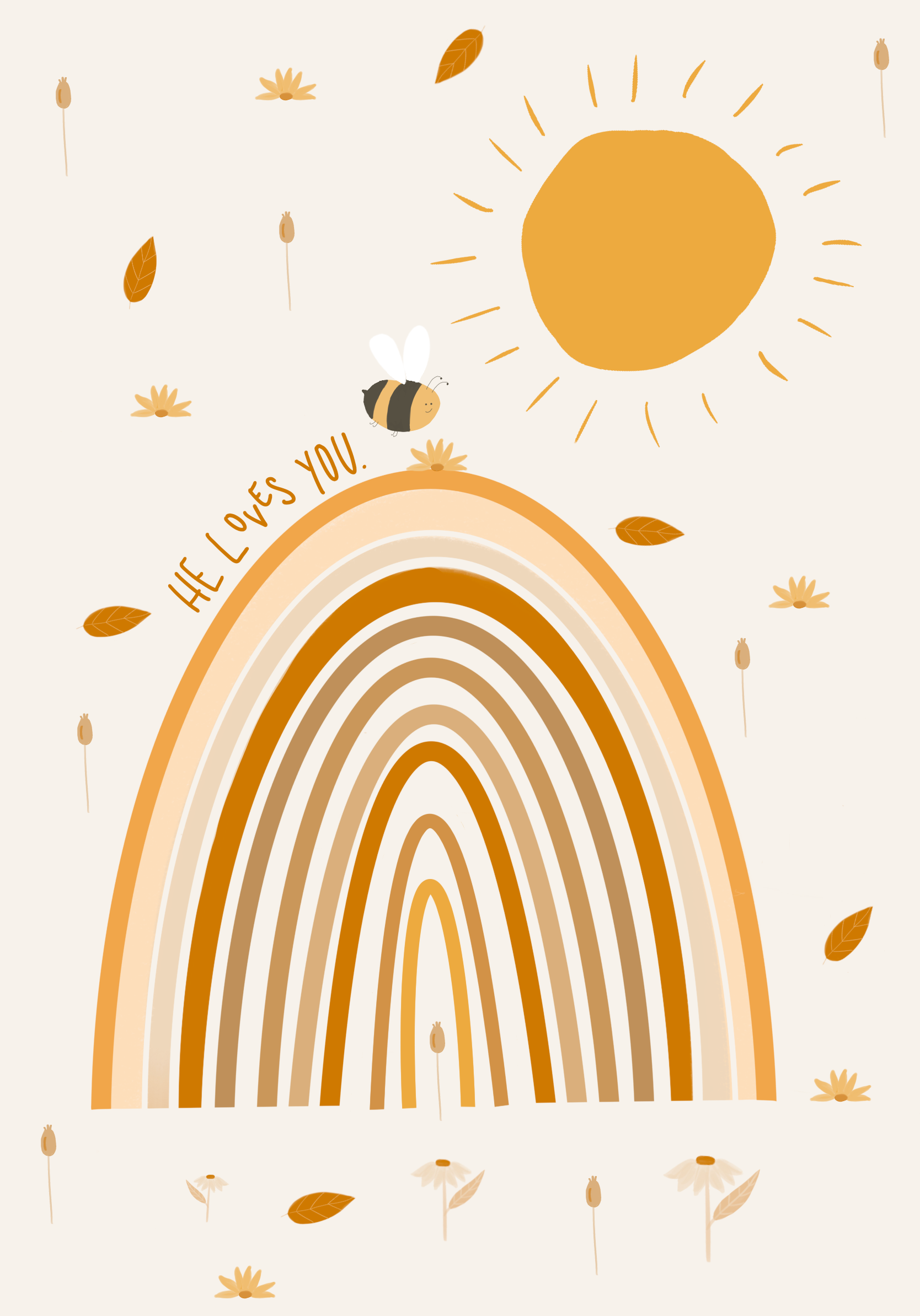 Postkarte Regenbogen; He loves You; Biene; Sonne; Boho; Blumen